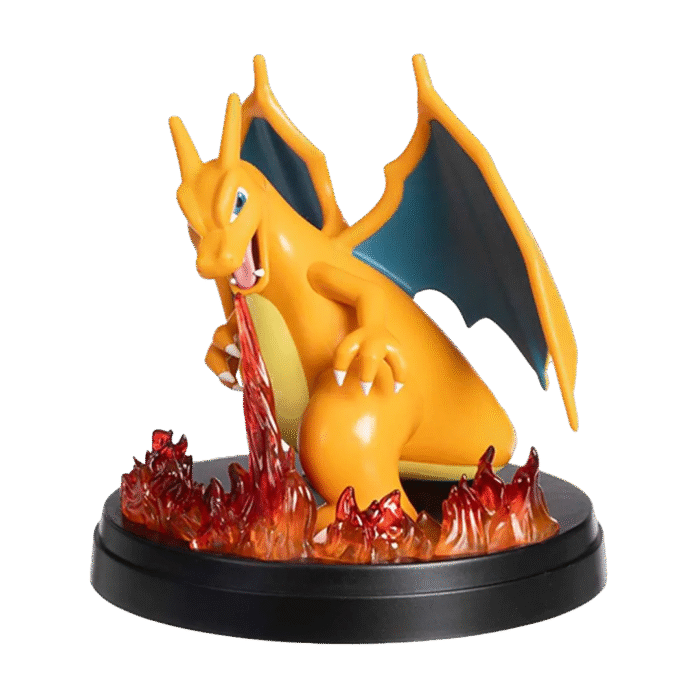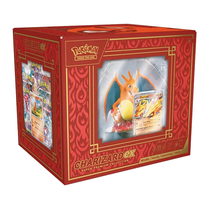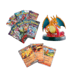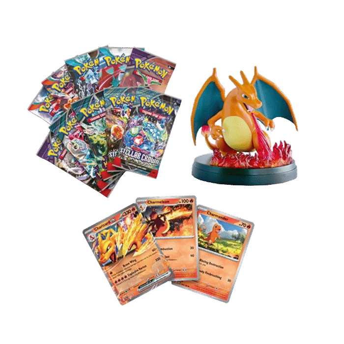 With explosive attacks and huge HP, Charizard ex has a commanding presence on the battlefield! Bring that burning tenacity to life on your desk, bookcase, or nightstand with an awesome Charizard figure featuring translucent fire effects to show off a favorite card—like the foil Charmander, Charmeleon, or Charizard ex you also get in this collection! Even more fun awaits in a stack of 10 booster packs from different Pokémon TCG expansions.Â