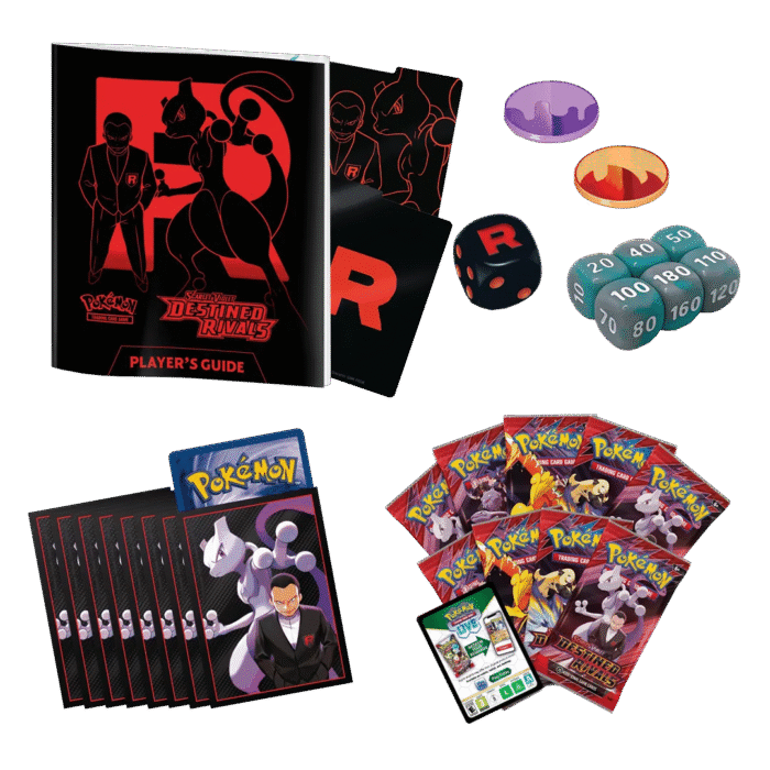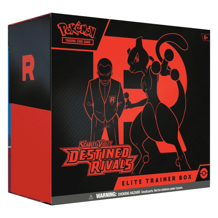 Whose Side Are You On? Pokémon Trainers, be on high alert! The nefarious Team Rocket is setting its latest plan into motion, and heroic Trainers are racing to stop it. Join forces with the likes of Cynthia and Garchomp ex, Ethan and Ho-Oh ex, or Arven and Mabosstiff ex… Or reconsider your loyalties and fight alongside Team Rocket’s Pokémon like Mewtwo ex—under the command of Giovanni! Choose a side, assemble your allies, and battle boldly in the Pokémon TCG: Scarlet & Violet—Destined Rivals expansion!