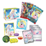 A kind and courageous Pokémon Trainer, Lillie finds strength in the bonds she shares with her Pokémon. Here as a foil promo card, Lillie’s Clefairy ex puts pressure on Dragon-type Pokémon, and it becomes more powerful with friends on the Bench! You’ll also find three copies of Lillie’s Pearl—a Pokémon Tool card that helps Lillie’s Pokémon—along with booster packs, a fun sticker, illustrated card sleeves and deck box, plus other accessories for playing the Pokémon TCG.Â
