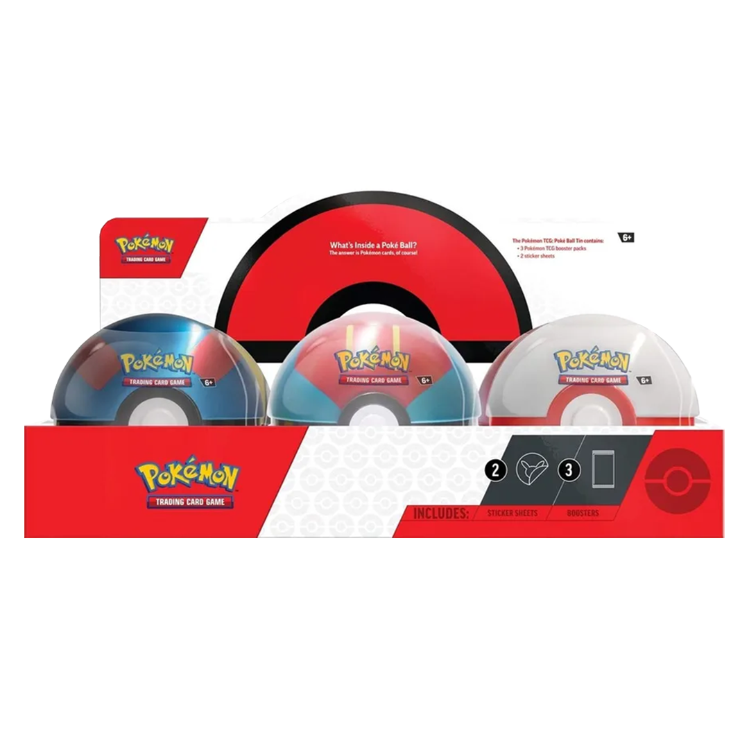 What’s Inside a Poké Ball? The answer is Pokémon cards, of course! This display contains 6 Poké Ball tins in total!