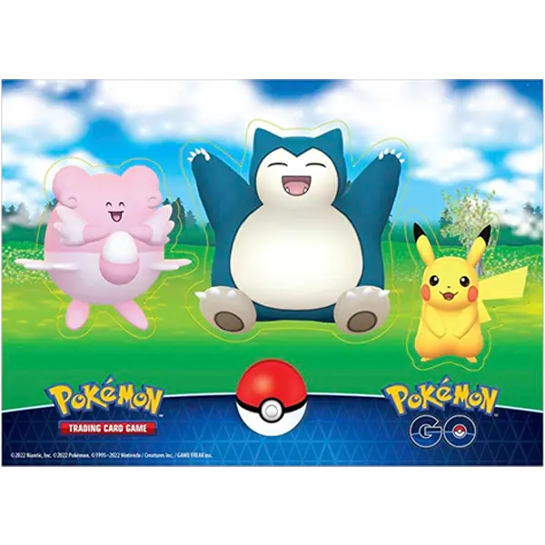 Gifts can be tough to pick out—but Pikachu wants to help! This thoughtful Pokémon is here as a foil promo card that can help you find an Item card from your deck, and it’s joined by another Pokémon friend as a playable foil card. Expand your collection with Pokémon GO booster packs, and decorate your binder or deck boxes with a set of colorful stickers featuring Pikachu, Snorlax, and Blissey!