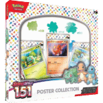 An epic journey through the Kanto region wouldn’t be complete without a first partner Pokémon! Add Bulbasaur, Charmander, and Squirtle to your team as playable foil promo cards, then work on completing your Kanto Pokédex by opening more booster packs from the special Scarlet & Violet—151 expansion. On top of it all, you’ll find a colorful poster that’s ready to hang wherever you like!