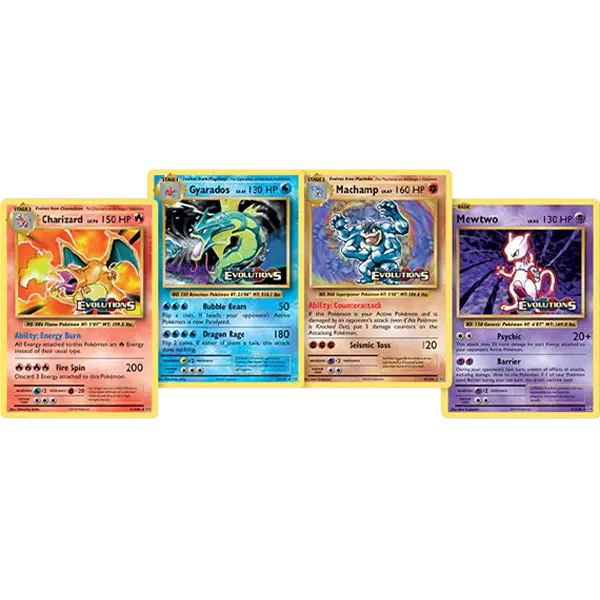 All Trainers and Pokémon grow and evolve—and this expansion restores the very first Pokémon trading cards to glory! With the exhilarating power of Mega Venusaur-EX, Mega Charizard-EX, and Mega Blastoise-EX, plus some wild surprises like Dragonite-EX, Ninetales BREAK, Machamp BREAK, and Mega Slowbro-EX, the classic hard-battling Pokémon and old-school Trainers are reinvented for a new generation. Ask Professor Oak to get you started, and reach new heights with the Pokémon TCG: XY—Evolutions expansion!